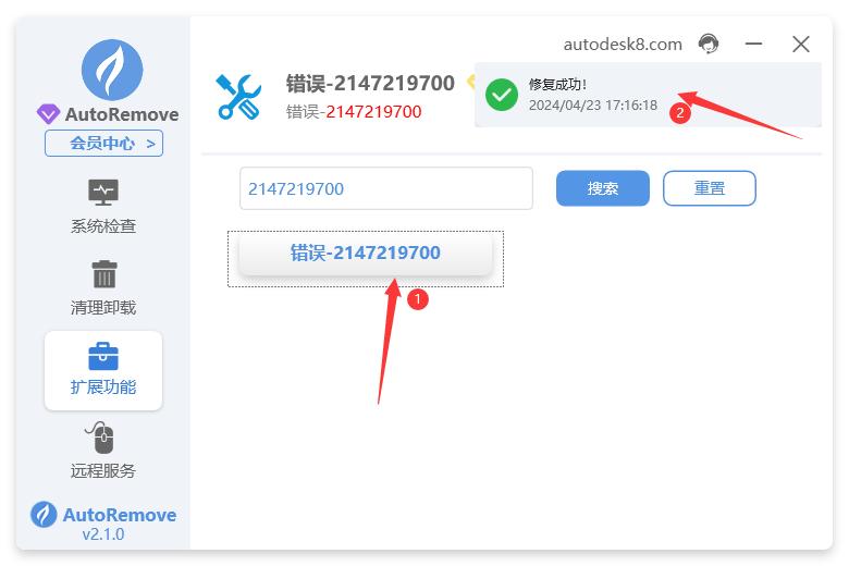 2. 点击出现的按钮,提示修复成功,然后尝试重新安装软件