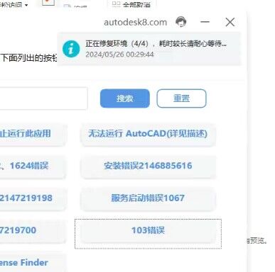 1.cad安装错误103,用autoremove的扩展修复103卡在最后。
