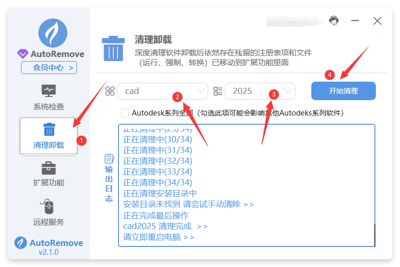 清理完成重启电脑再进行安装即可,不然2020版本以上会出现错误1603。