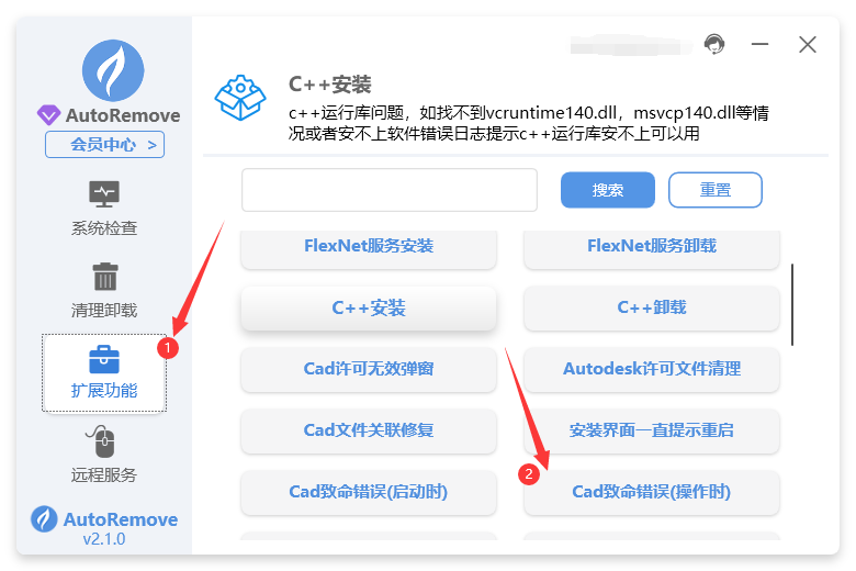 2.然后点击autoremove扩展里面的cad致命错误(操作时)按钮