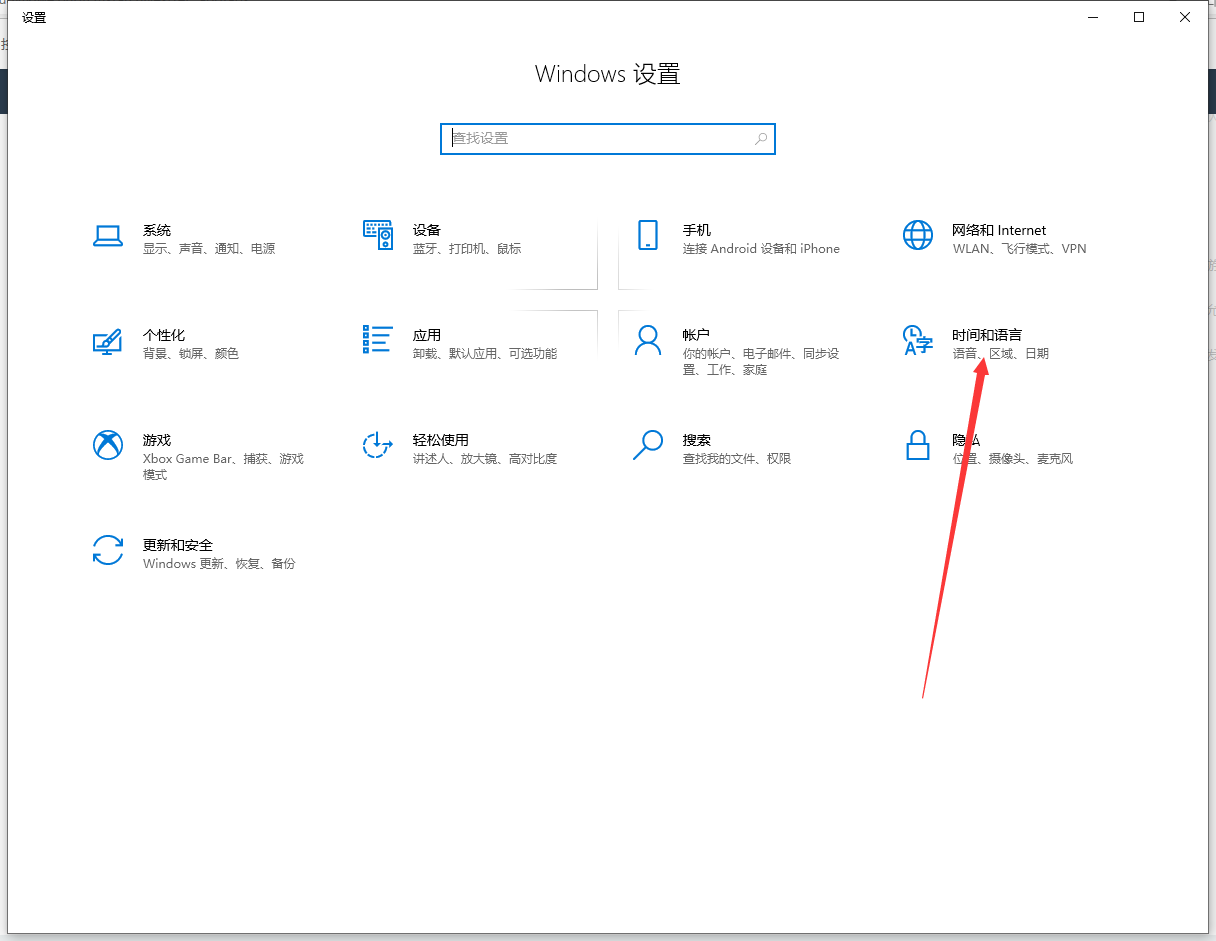 在设置界面中,找到"时间和语言"选项,并打开它。